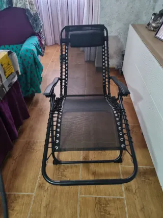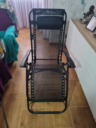 Silla reclinable y plegable, ideal para exteriores. En perfecto estado - Estructura de metal. - Asiento de tela