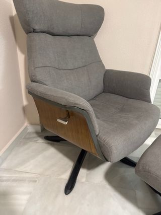 Cómodo sillón reclinable con su reposapiés a juego. Perfecto para relajarse. - Diseño moderno. - Base giratoria. - Acolchado confortable.