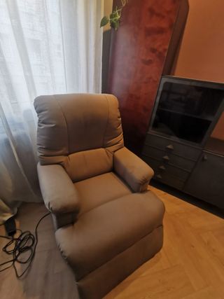 Butaca de relax con un diseño moderno y confortable. - Tapicería en tela y polipiel. - Tonos beige y marrón. Con boton de abrir y cerrar Es prácticamente nueva con garantía todavia la vendo por cambio de sofa