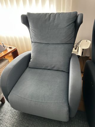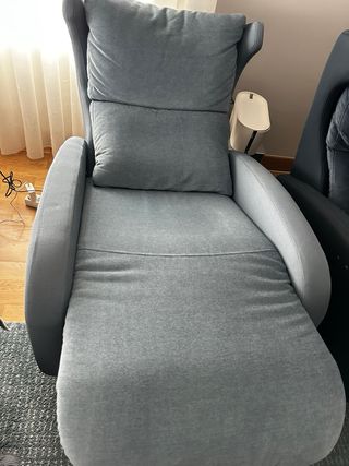 Sofá chaise longue con uso muy ligero. (Comprado en febrero 2023) 1 chaise longue fijo y dos asientos relax motorizados con botón táctil oculto. Comprado en eurosofá. Las espumas son de muy alta calidad y no se hunden nada. La sentada es muy agradable. Tela antimanchas gris clarito lavable con agua. **Tiene una pequeña zona con la pelusa de la tela un poco sacada en el brazo por mi gata, se aprecia unicamente de cerca. (foto detallada) El precio de compra fue de 2100€. Se divide en 3 piezas para facilitar transporte.