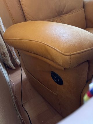 Se vende sillón relax eléctrico de color beige, con mando y puerto USB. Es un sillón cómodo y confortable, ideal para relajarse. Muy buen estado, siempre con sábana en lo alto. - Incluye mando a distancia para controlar las funciones de reclinación. - Dispone de un práctico puerto USB. - Tapizado en tela y piel sintética de agradable textura.