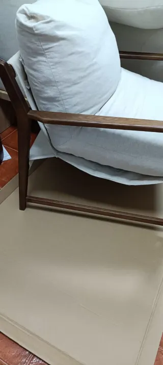 Butaca de Zara Home con estructura de madera y tapizado de lino. - Diseño elegante y confortable. - Tonos neutros que combinan fácilmente. Tiene en la parte inferior una parte cosida y reforzada por profesional pero no afecta a su estética ya que no se ve.Ultima foto