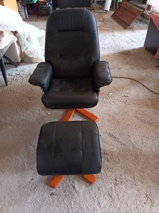 Muy bonito cómo nuevo confortable...los pies del sillón y reposapies son de madera y sillon de piel