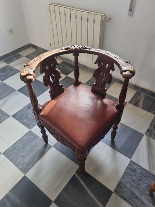 Sillones antiguos de madera tallada y silla.
