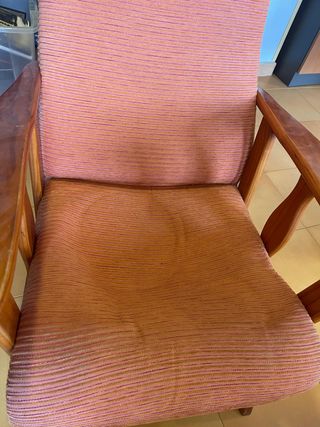 Pareja de butacas de madera con tapicería de tela. El pack por 10 euros