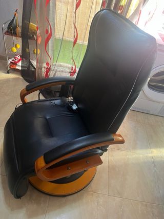 Vendo sillón de masajes en perfecto estado, se reclina para atrás, da masajes, se levante la parte baja para apoyar los pies... es de piel, color negro, el pie en madera y hierro, de muy buena calidad.