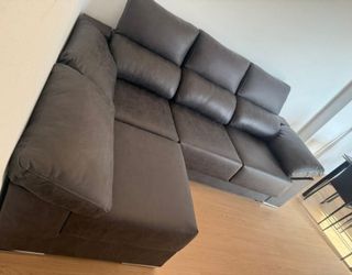Sofá chaiselongue de cuatro plazas con un diseño moderno y elegante. Perfecto para tu salón. Asientos extraibles, y se convierte en cama. Muy cómodo y está prácticamente nuevo (menos de dos años de uso) lo vendemos por mudanza. - Estructura con canapé para almacenamiento. - Tapicería de microfibra anti-arañazos y anti manchas - Fácil de limpiar y lavar las fundas - está tal cual las fotos, sin manchas, sin ningún rasguño y cojines en perfecto estado