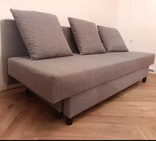 Sofá cama de Ikea, ideal para espacios reducidos y bien aprovechado, tiene un pequeño canapé para poder guardar mantas, sábanas, etc. Prácticamente nuevo, usado un par de veces. - Diseño moderno y funcional. - Tapizado en tela resistente. - Patas negras discretas. - Tres cojines a juego (añadí cremalleras para su lavado) Medidas de largo sofá 190 Medidas cama abierta 130 ancho