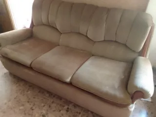 Sofá 3 plazas + 2 sillas madera