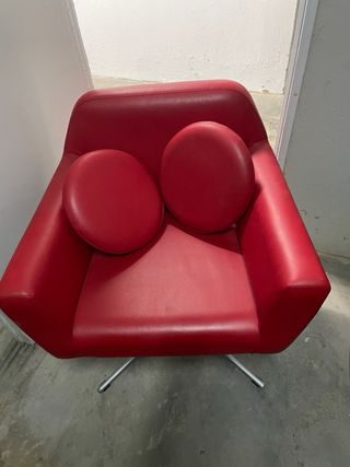 Cómodo sillón Poäng de Ikea con un diseño moderno y ergonómico. - Estructura de madera wengue - Tapicería de tela roja. - Cojín reposacabezas Se recoge en zona de Alcalá de Guadaira (Sevilla) Buen estado de conservación.