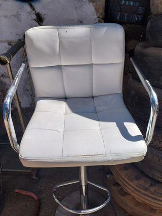 Sillón de piel sintética blanca. Aunque presenta algunas señales de uso - Estructura metálica. - Asiento acolchado.