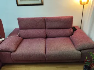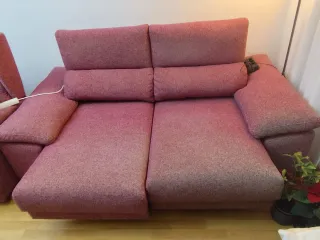Cómodo sofá de 2 a 3 plazas, perfecto para tu salón. Su diseño moderno y funcional se adapta a cualquier espacio. - Tapizado en tela lavable, antimans, alguna decoloración en bordes del asiento - Reposapiés de ajuste manual para mayor confort. Cabeceros tb regulables en inclinacion - Estructura robusta y duradera.