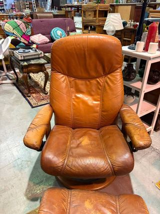 Sillón de piel marrón en buen estado