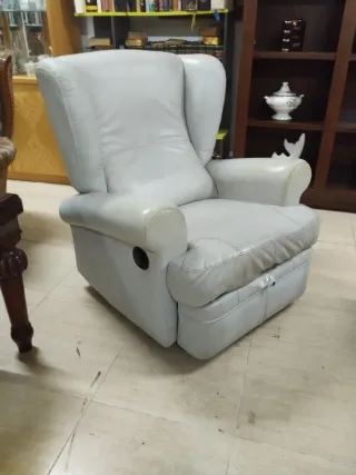 Este sillón es perfecto para quienes buscan comodidad y asistencia. - Función eléctrica para reclinar. - Mecanismo de ayuda para levantarse. - Tapizado suave y confortable,desenfundable. Tiene un par de desperfectos como se puede apreciar en las fotos, una mancha que por quitar otra se ha descolorido un poco y por el roce que tenía en la pared al usarlo está algo rozado, por lo demás está muy bien conservado y usado poco, funciona perfectamente.