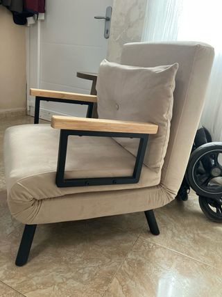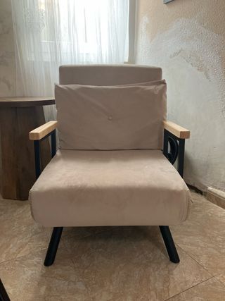 Sillón Cama Beige Tela y Madera