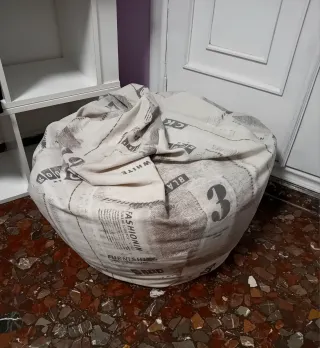 Cómodo puff grande con un diseño moderno y original, ideal para cualquier espacio. - Relleno de bolitas que se adapta a tu postura. - Tejido resistente y agradable al tacto. - En muy buen estado.