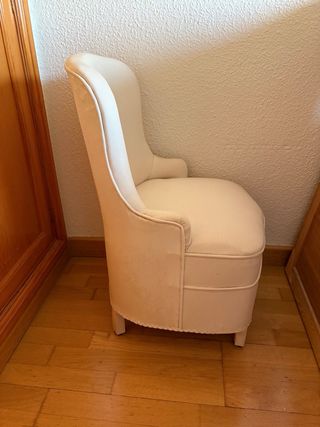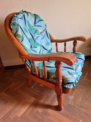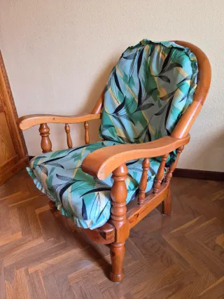 Sillones tapizados con silla a juego. Se vende junto o separado. Cada sillón cuesta 25€ y la silla 10€. Medidas: Sillones Alto 95cm Ancho 57cm Fondo 50cm Silla Alto 92cm Fondo 44cm Ancho 49
