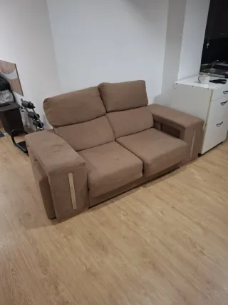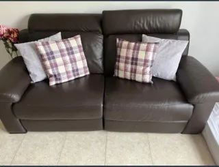 Sofá eléctrico de dos plazas en perfecto estado. Su diseño moderno y elegante aportará un toque de distinción a tu salón. - Tapicería de piel. - Color marrón. - Mecanismo eléctrico para reclinar los asientos.