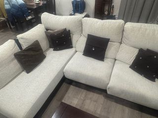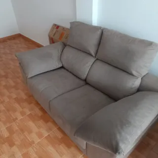 Conjunto de sofás de 3 y 2 plazas en buen estado. El color es beige y marrón, con un acabado suave. - Sofá de 3 plazas. - Sofá de 2 plazas.