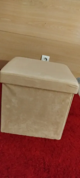 Práctico puff cuadrado con espacio de almacenamiento interior. Muy fácil de plegar y guardar cuando no lo utilizas. Producto de buena calidad. Si tenéis mascota regalo funda que sale en la foto para ponerle. Poco usado. - Medidas: 40 x 40 cm. - Tapizado en tela. - Tapa abatible para acceder al interior.