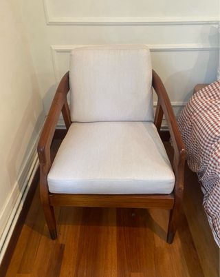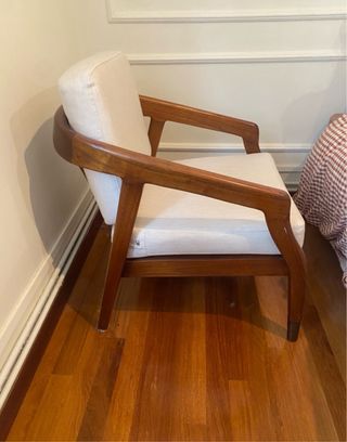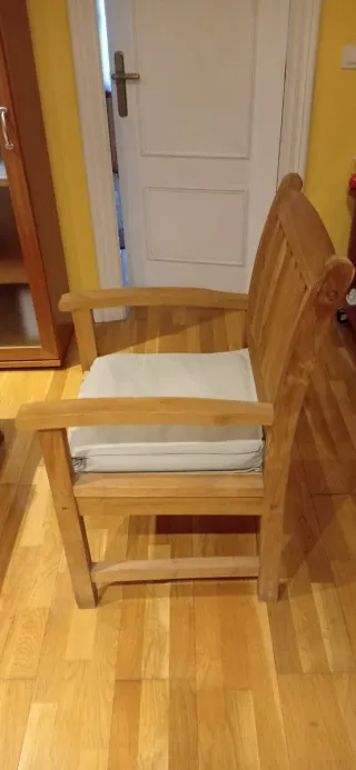 Extremadamente cómodo. Con un diseño suavemente inclinado, el respaldo sólido proporciona soporte para su columna vertebral. Apto para los que sufren de dolores de espalda. Los cojines de asiento y respaldo de esta sillón están hechos de una espuma muy suave. Sus resistentes patas de madera de caucho duraderas vienen con almohadillas de pie para equilibrar suelos irregulares y proteger sus suelos de madera. Soporta hasta 136 Kgrs. Compacto y poco pesado. Se mueve con facilidad de una estancia a otra. Versátil. Apto para hogar u oficina. Como NUEVO. Prácticamente sin uso. Precio NO negociable.