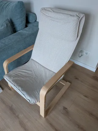 Cómodo sillón Poäng de Ikea con estructura de madera de abedul. - Diseño ergonómico. - Cojín mullido para mayor confort. - Se ha usado para la lactancia. - Diseño nórdico / ofrece calma visual - Pequeña mancha en la zona de asiento (se observa en la foto)