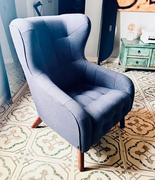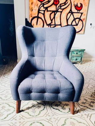 Cómodo sillón relax en buen estado. No es reclinable, precio original 150€ lo vendemos por 50€. - Tapicería de tela. - Color azul. - Cremallera rota El comprador tiene que recoger el sillón en el domicilio. Tenemos ascensor.