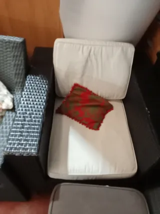Cómodo sillón Ikea de madera y tela, ideal para relajarse. Se encuentra en buen estado. - Diseño elegante y moderno. - Perfecto para cualquier habitación. - Estructura resistente y duradera.