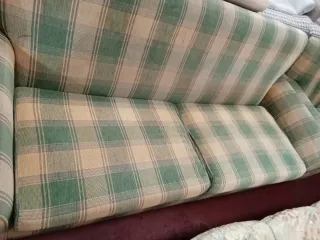 Conjunto de sofás de tela con un diseño a cuadros. - Sofá de tres plazas. - Sofá de dos plazas.