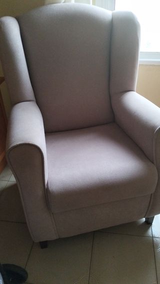 Sillón orejero cómodo y amplio, en muy buen estado. Tela resistente, sin manchas ni roturas. Ha tenido poco uso y está bien cuidado. Perfecto para salón, dormitorio o rincón de lectura. Color neutro que combina con cualquier decoración.