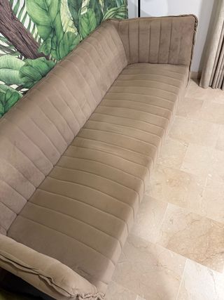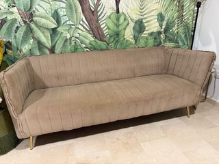 URGE VENDER!!! Sofá de diseño moderno con un acabado elegante. - Tapicería suave en tela y terciopelo. - Tonos neutros que combinan fácilmente. - Líneas limpias y estructura estilizada. Tiene uno de los laterales roto, se sostiene pero no te puedes apoyar