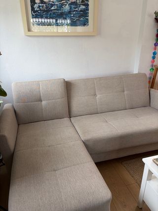Sofá cama beige de tela