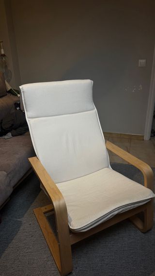 Cómodo sillón de IKEA con estructura de madera y tapizado en tela. sillón IKEA en estado impecable. Incluye dos fundas: una beige y una gris. El sillón está en perfecto estado y las fundas en muy buen estado, con un desgaste mínimo. Muy cómodo y bien cuidado.