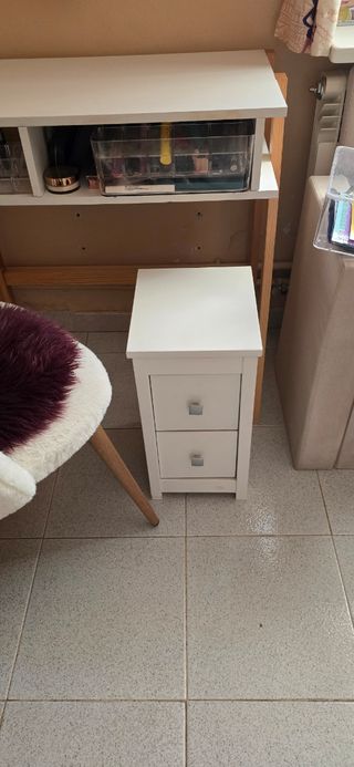 Tocador, sillón, cojín, alfombra y sillón baúl.