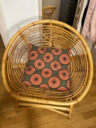 Sillón de mimbre redondo con cojín
