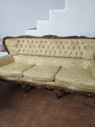 Sofá y sillones vintage tela y madera