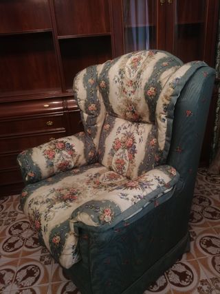 Butaca de estilo vintage con un diseño clásico y elegante. Perfecta para añadir un toque de encanto a cualquier rincón. - Tapicería con estampado floral. - Estructura de madera robusta.hay que tapizadas si no te gusta el color y los apoyaremos encolarlos