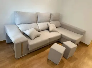 🛋🛋🛋🛋Sofá nuevo ✅Info por WhatsApp al 673833341 a estrenar, medida 260cmx150cm, cheislong abatible, brazo con taburetes, tejido antimanchas, patas cromadas, asientos extensibles, espuma de calidad, cabezales reclinables, colores en sofás: Gris claro, Gris oscuro, y Beis. Pago a contrarembolso Envíos diariamente por Barcelona y alrededores. Disponemos precios económicos, precios de fábrica 🏭 gracias por su mensaje, atiendo inmediatamente.