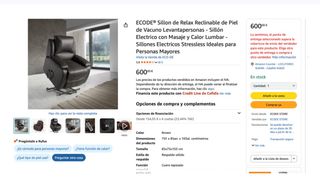 Sillón de relax reclinable ECODE de piel marrón. Está en muy buen estado. - Reclinable - Con masaje y calor - Ideal para personas mayores - 75x85x105 cm Se compró hace 6 meses por 600€ y tiene en un brazo unos arañazos de un gato. Se vende por cambio de vivienda.