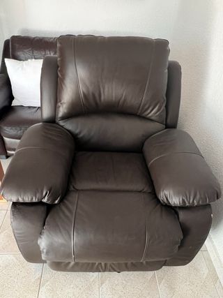 Cómodo sillón de piel en tono marrón. Añade un toque de calidez y confort a tu salón. - Diseño clásico y elegante. - Acolchado confortable. No se abre, necesitaría cambiar el cable. Por lo demás está perfecto, la piel no tiene ni un rasguño. Comprado en El Corte Inglés.