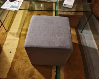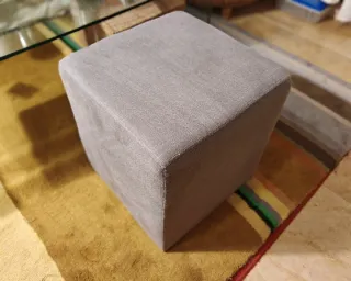 Puff cuadrado con diseño minimalista y moderno. Ideal para el salón o dormitorio, ya sea como asiento extra para visitas o para descansar los pies después de un largo día. Color gris medio jaspeado (fácil de combinar con cualquier sofá). Estado: Impecable, sin manchas ni roturas. Es súper fácil de limpiar. Incluye topes en la base para no dañar el suelo y mejorar la estabilidad. Su estructura firme permite usarlo incluso como mesita auxiliar colocando una bandeja encima. Un mueble práctico y ligero que cabe en cualquier rincón.