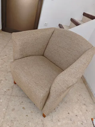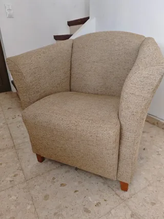 Se venden dos sillones de tela en color beige. - Diseño moderno y cómodo. - Fundas extraíbles para facilitar la limpieza.