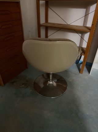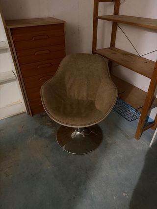 Este sillón de diseño aporta un toque moderno a cualquier espacio. Su forma envolvente y base giratoria lo hacen muy cómodo y funcional. Cremallera mal estado.La parte de las patas está desmontada, para poder transportar.Acepto ofertas razonables. - Tapizado en tela. - Base de metal.