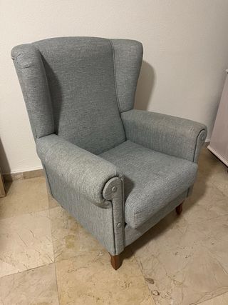 Acogedor sillón orejero con un acabado suave y agradable al tacto. - Diseño clásico con orejas. - Patas de madera.
