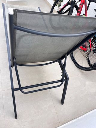 Sillón de exterior con estructura metálica y asiento de malla. PRECIO UNIDAD. DISPONIBLES, 2 UNIDADES. / LAS DOS UNIDADES 50, precio original de compra el verano pasado 69 cada uno. Venta por traslado. - Ideal para terraza o jardín. - Diseño moderno y ligero. - Fácil de limpiar.