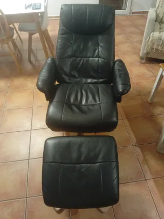 Cómodo sillón reclinable con su reposapiés a juego. El conjunto ofrece un diseño elegante y confortable. - Tapicería de piel. - tanto sillón como reposapiés electrico