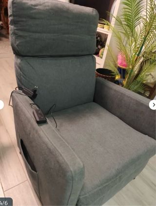 Sillón reclinable con funciones de masaje y calor. Ideal para relajarse. - Tapizado en tela. (Está bastante usada ) pero cin la funda se ve perfecto. - Color gris.