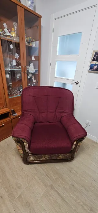 Conjunto de sofá de 3 plazas y sillón individual. - Tapicería de tela. - Estructura de madera. Mesa de cocina blanca Cerrada 0.70cm X1.10 Abierta 0.17cmX1.70 Altura 075cm Nos de envia ni se transporta. Sitio recogida Getafe Precio negociable