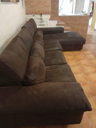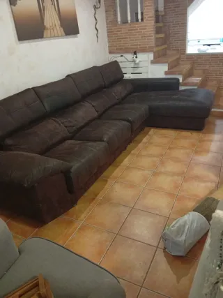 Vendo sofá chaise longue de 3 plazas en color marrón, cómodo y amplio. Tiene chaise longue con arcón de almacenamiento y respaldos grandes. 📌 Estado: usado, con marcas normales del uso (se aprecia en las fotos). 📏 Ideal para salón, piso de alquiler o segunda vivienda. 📍 Recogida en mano (no hago envíos por el tamaño). 💬 Si quieres, puedo enviar medidas aproximadas o más fotos.
