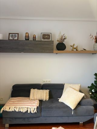 Se venden sofás de tela en color gris oscuro, acompañado de dos cojines. El primero tiene una largura de 180cm mientras que el segundo es de 160cm + respaldo. Además de tener un diseño moderno y cómodo, están en muy buen estado ya que se compraron a mediados de 2024. Otras de sus características son: -Se pueden unir y conseguir un sofá chaise longue. -Los reposacabezas de ambos sofás son ajustables y se pueden levantar para apoyar la cabeza. - Incluye dos cojines del mismo tono que los sofás (se ven en la segunda y cuarta foto). -Fácil de lavar por su tejido.